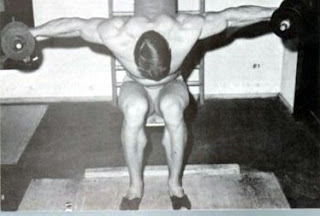 Como estará treinando com pesos, não faça o agachamento por completo, pois segundo cirurgiões ortopédicos, isso pode danificar os joelhos. ( NOTA 2: Este, assim como outros conceitos, foram desmentidos por estudos posteriores, e mesmo Arnold fazia o movimento completo em várias situações).